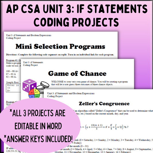 Goldie's AP® Computer Science A Coding Projects for Unit 3: if Statements