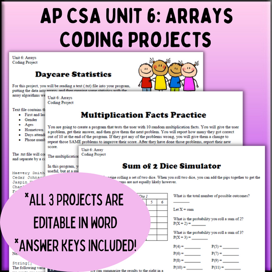 Goldie's AP® Computer Science A Coding Projects for Unit 6: Arrays