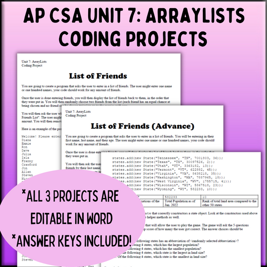 Goldie's AP® Computer Science A Coding Projects for Unit 7: ArrayLists