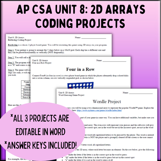 Goldie's AP® Computer Science A Coding Projects for Unit 8: 2D Arrays