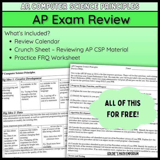 Goldie’s AP® Computer Science Principles Exam Review – FREE!!
