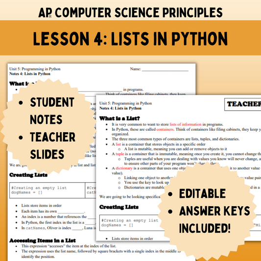 Goldie’s AP® CSP Unit 5 Programming – PYTHON Bundle