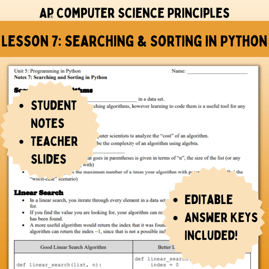 Goldie’s AP® CSP Programming in Python – Lesson 7: Searching and Sorting