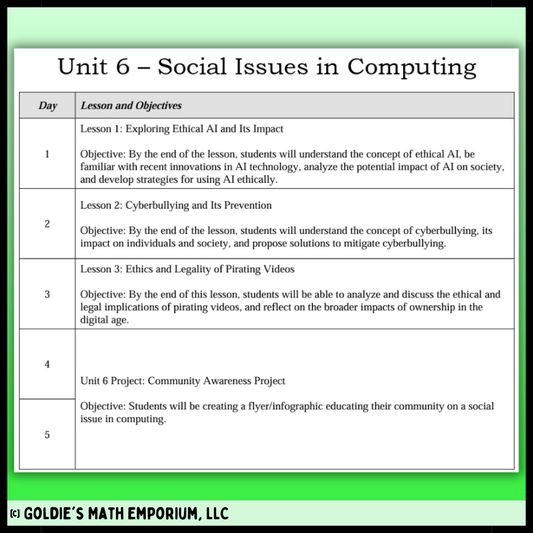 Goldie’s AP® Computer Science Principles – Unit 6 Social Issues in Computing