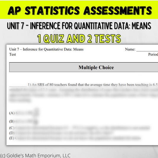 Goldie’s Unit 7 - Inference for Means - Assessments for AP® Statistics