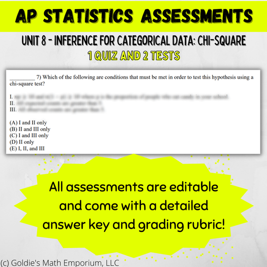 Goldie’s Unit 8 - The Chi-Square Distribution - Assessments for AP® Statistics