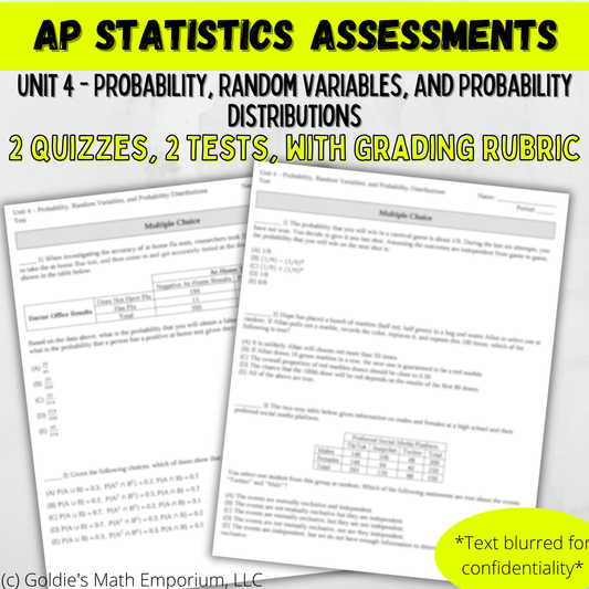 Goldie’s Unit 4 - Probability and Random Variables - Assessments for AP® Statistics