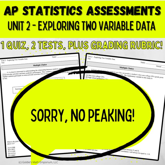 Goldie’s Unit 2 - Exploring Two Variable Data - Assessments for AP® Statistics