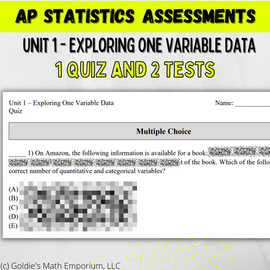Goldie’s Unit 1 - Exploring One Variable Data - Assessments for AP® Statistics