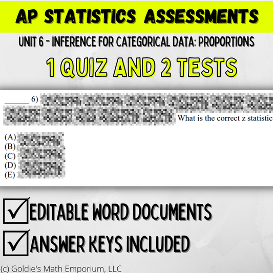 Goldie’s Unit 6 - Inference for Proportions - Assessments for AP® Statistics