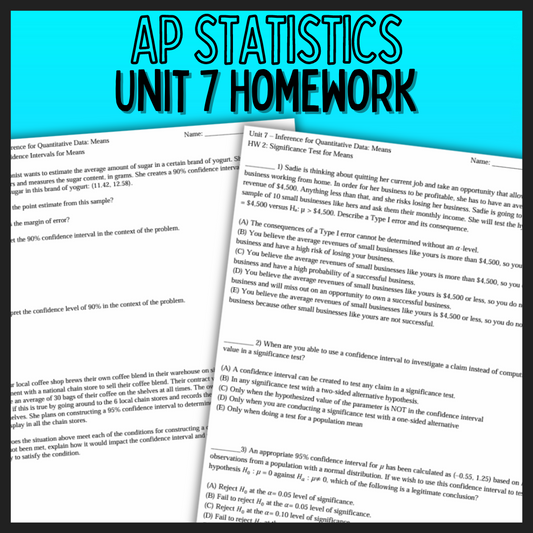 Goldie’s Unit 7 - Inference for Means - Homework for AP® Statistics