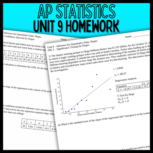 Goldie’s Unit 9 - Inference for Slopes - Assessments for AP® Statistics