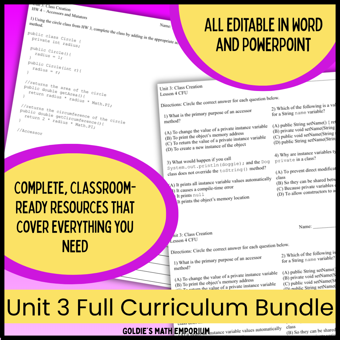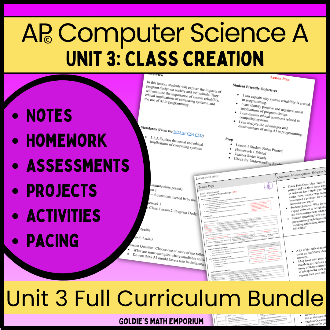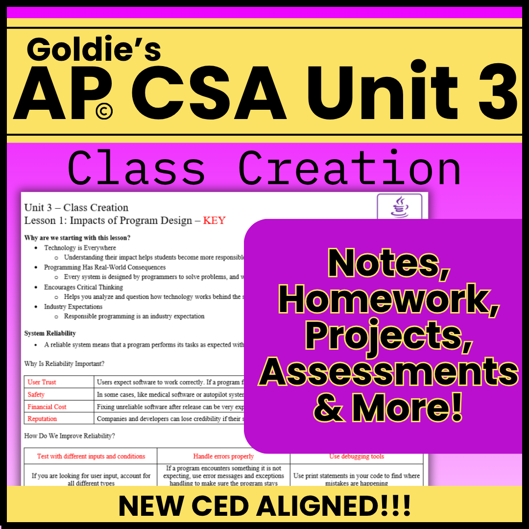 AP® CSA Unit 3: Class Creation | Goldie's Complete Curriculum