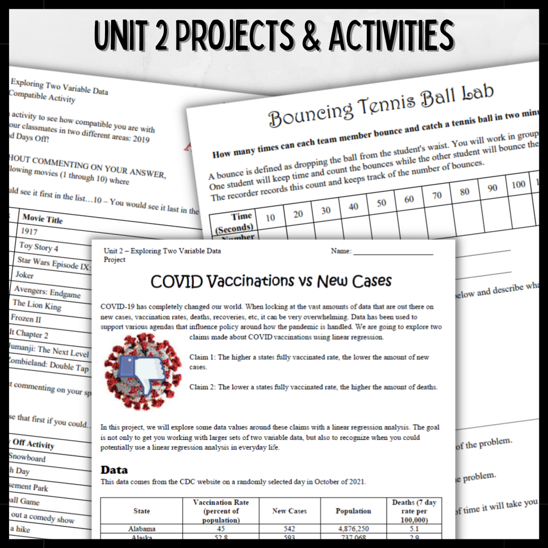 Unit 2 – Exploring Two Variable Data Projects and Activities
