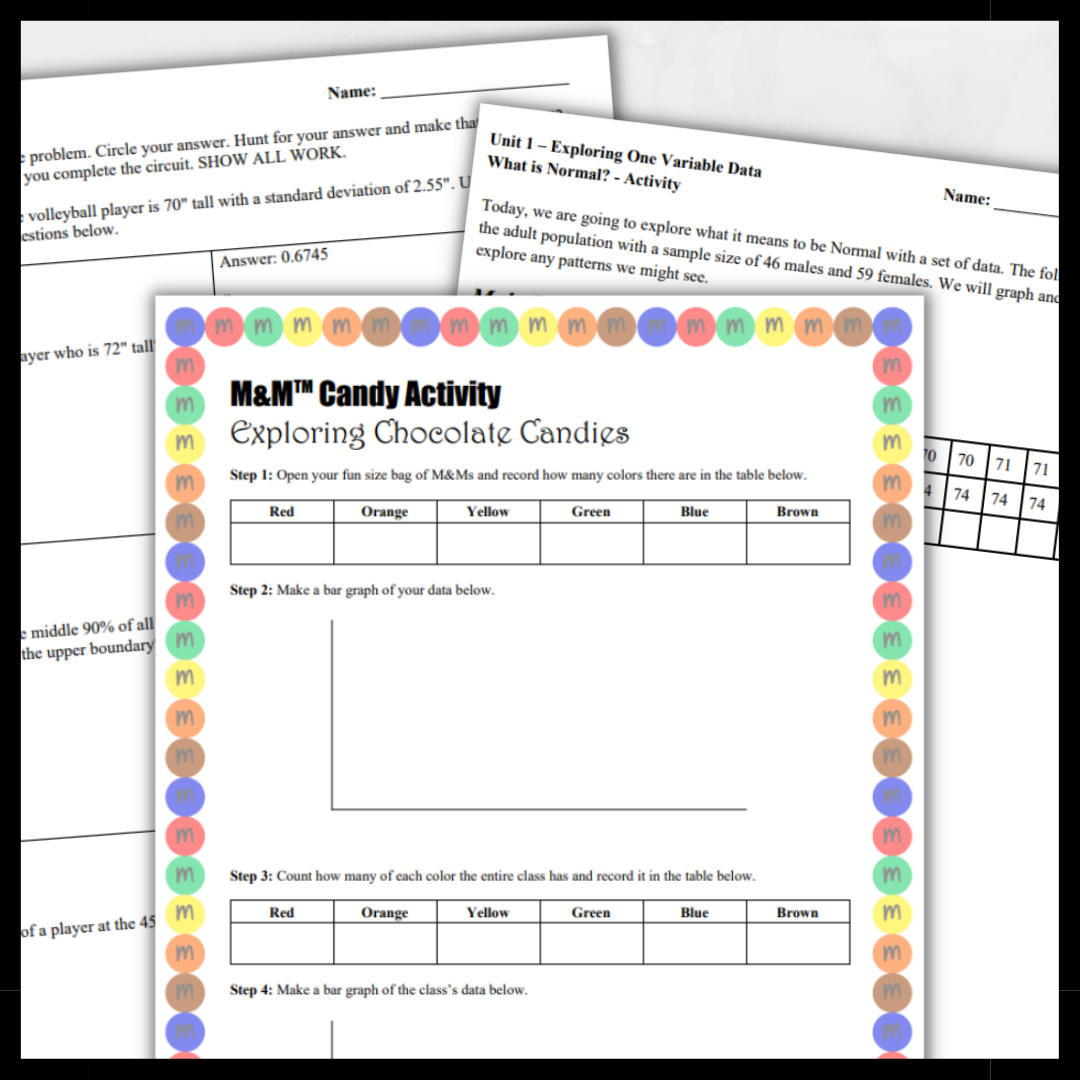 - Exploring Chocolate Candies - Students explore bar graphs and dot plots with fun-size M&Ms bags.