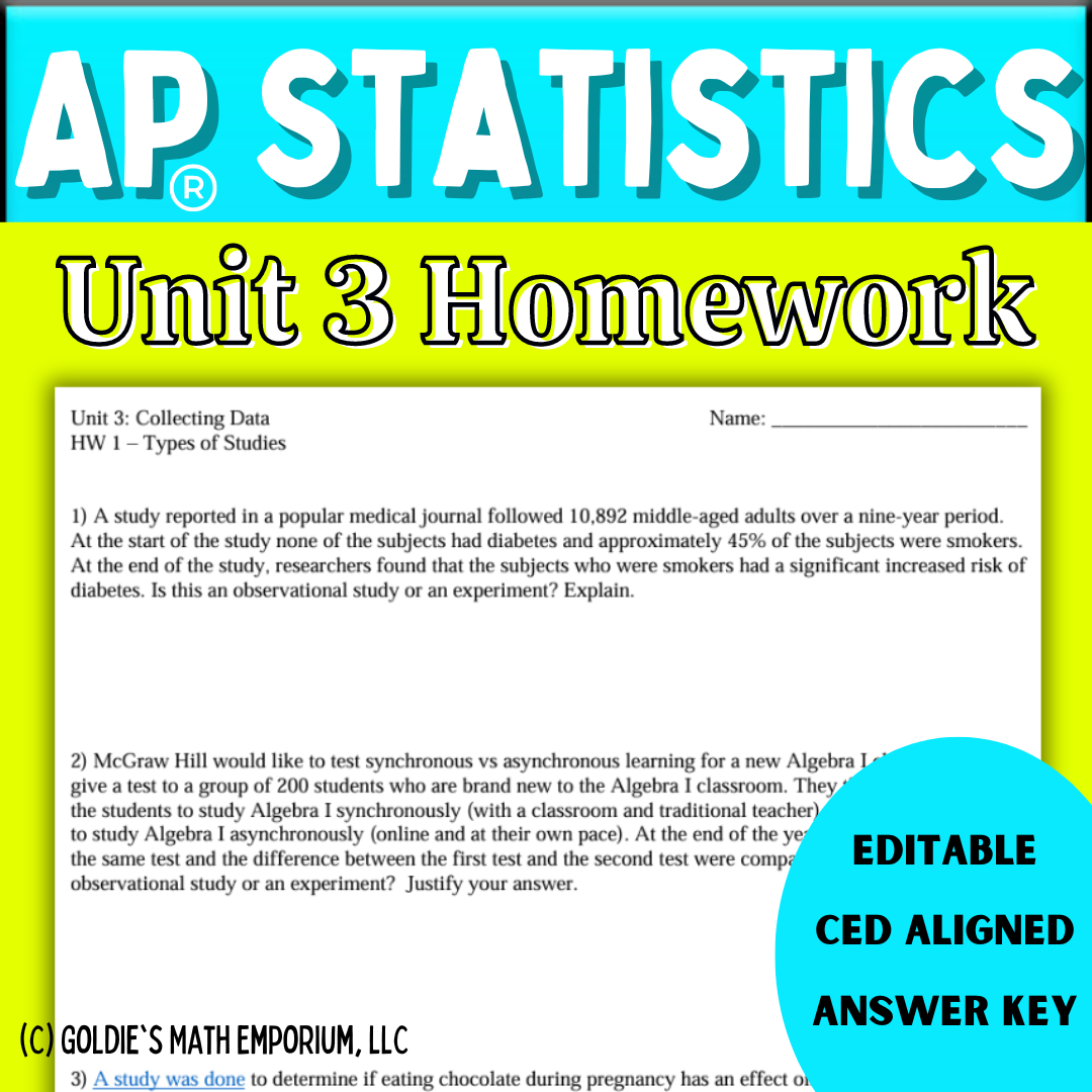 Goldie’s Unit 3 - Collecting Data - Homework for AP® Statistics