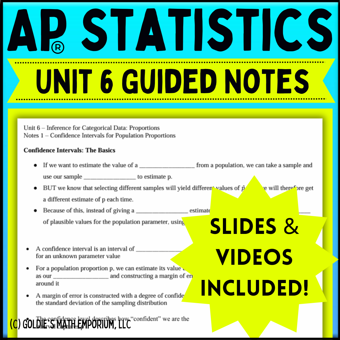 Goldie’s Unit 6 - Inference for Proportions - GUIDED NOTES for AP® Statistics