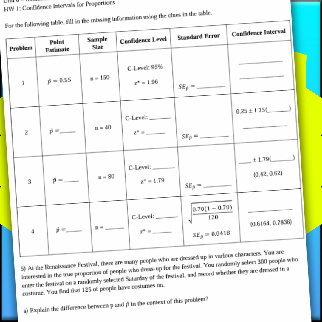Goldie’s Unit 6 - Inference for Proportions - Homework for AP® Statistics