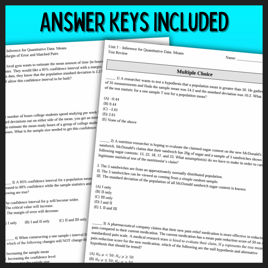 Note: If you have purchased Unit 7 Unit Plans or AP Statistics Full Curriculum, you already have these resources. You do NOT need to purchase this.