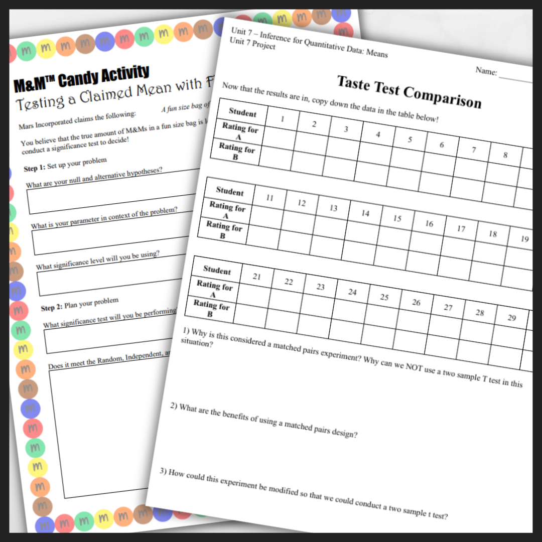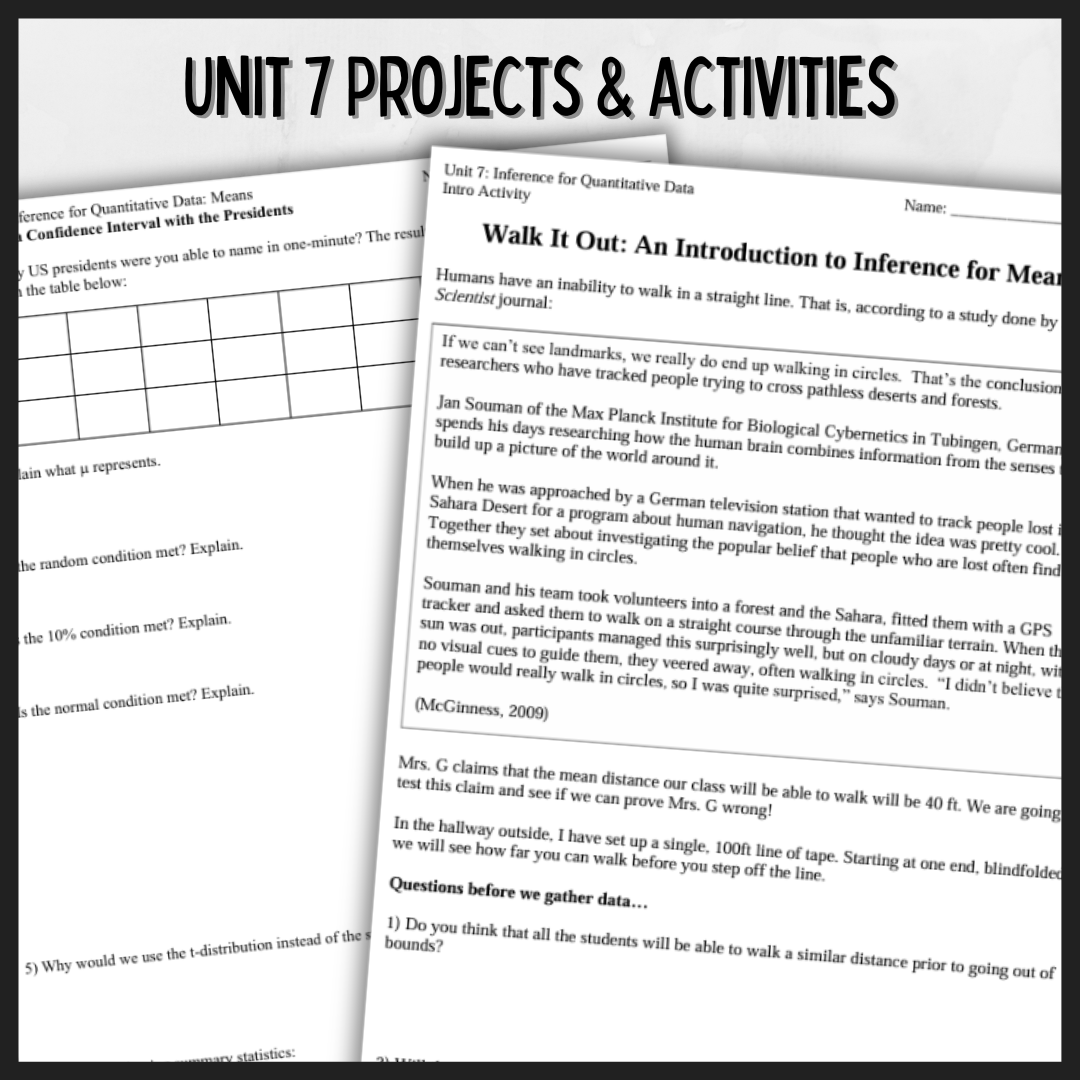 Unit 7 – Inference for Quantitative Data Means Projects and Activities