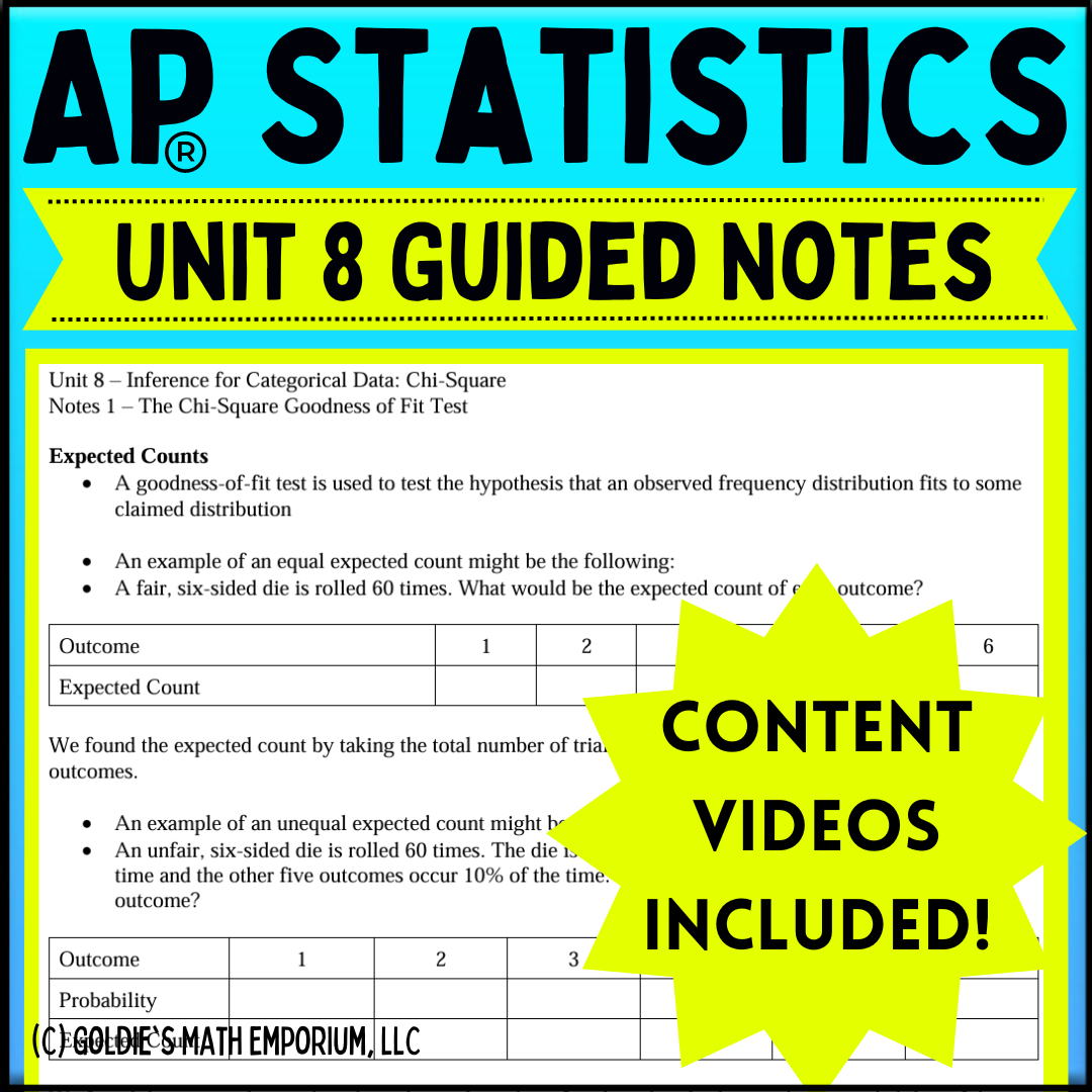Note: If you have purchased Unit 8 Unit Plans or Goldie's FULL CURRICULUM for AP® Statistics, you already have these resources. You do NOT need to purchase this.