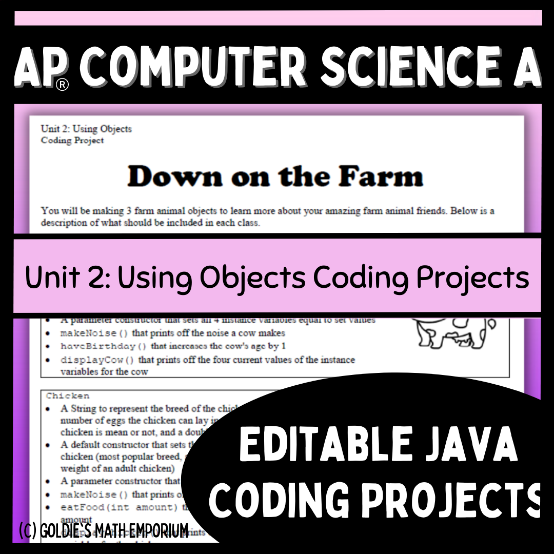 Goldie's AP® Computer Science A Coding Projects for Unit 2: Using Objects