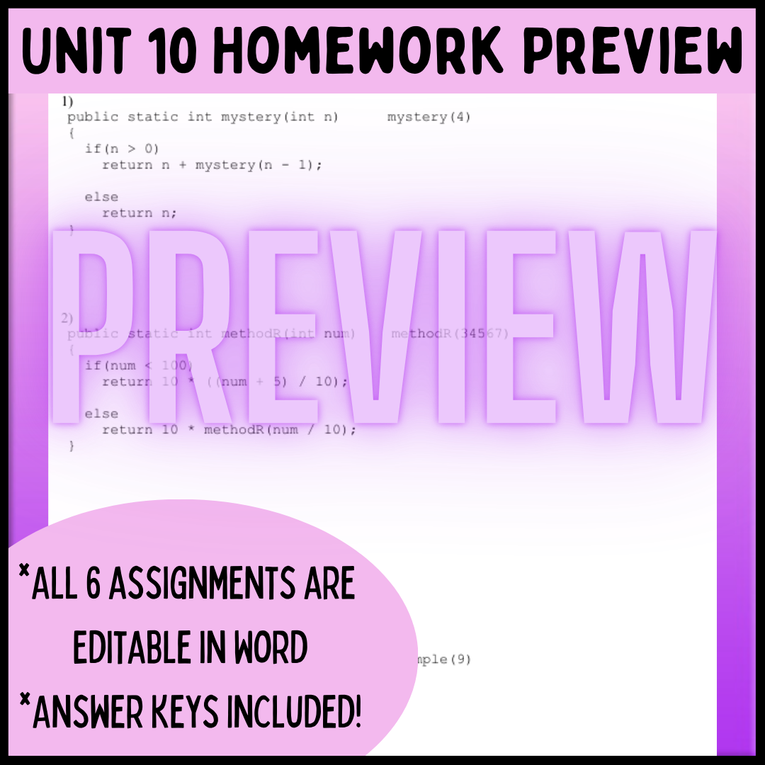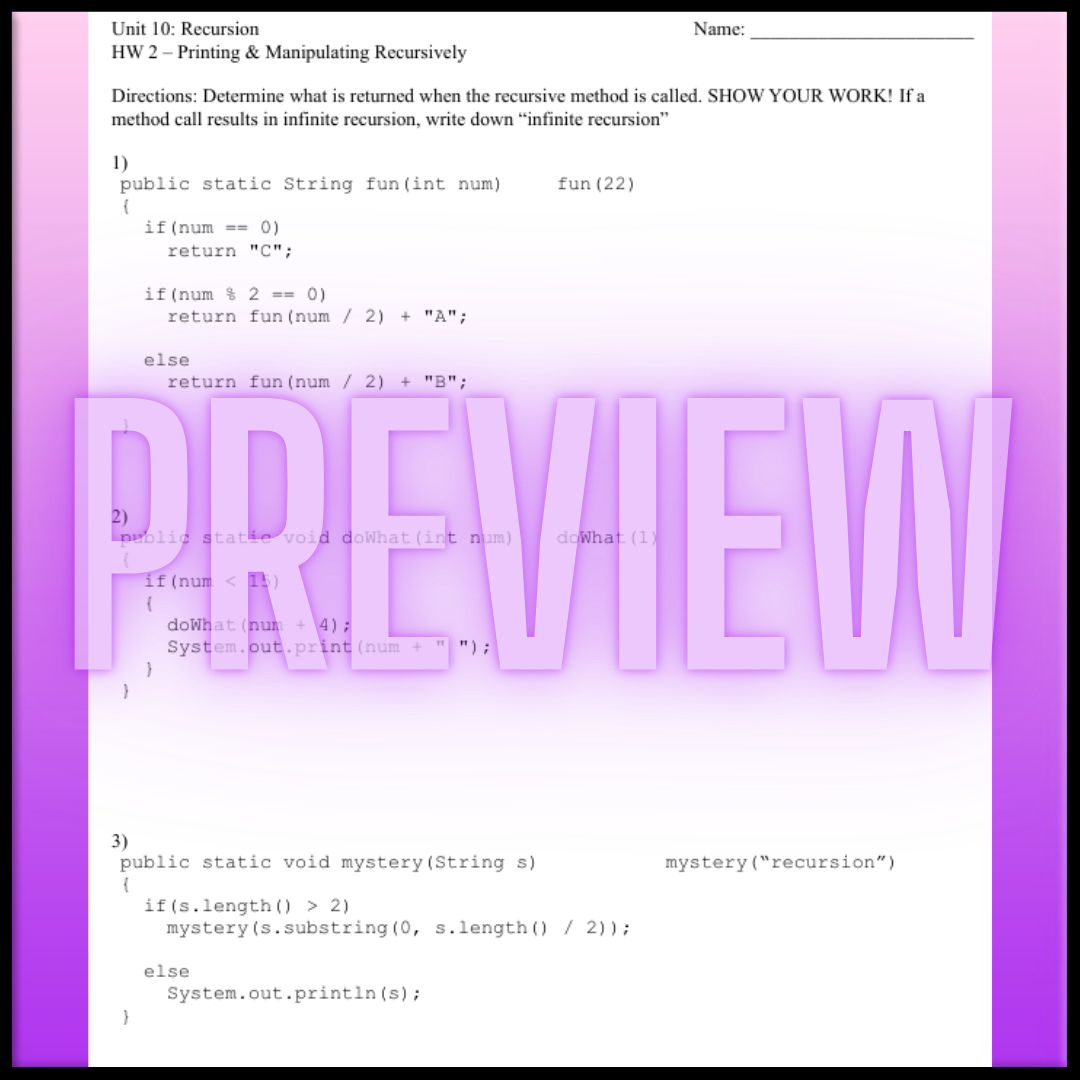 Goldie's AP® Computer Science A Unit 10: Recursion HOMEWORK