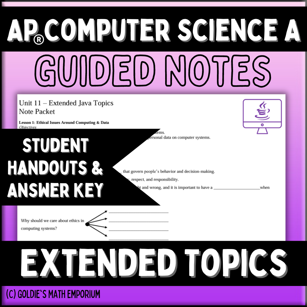 Goldie's Extended Topics GUIDED NOTES for AP® Computer Science A