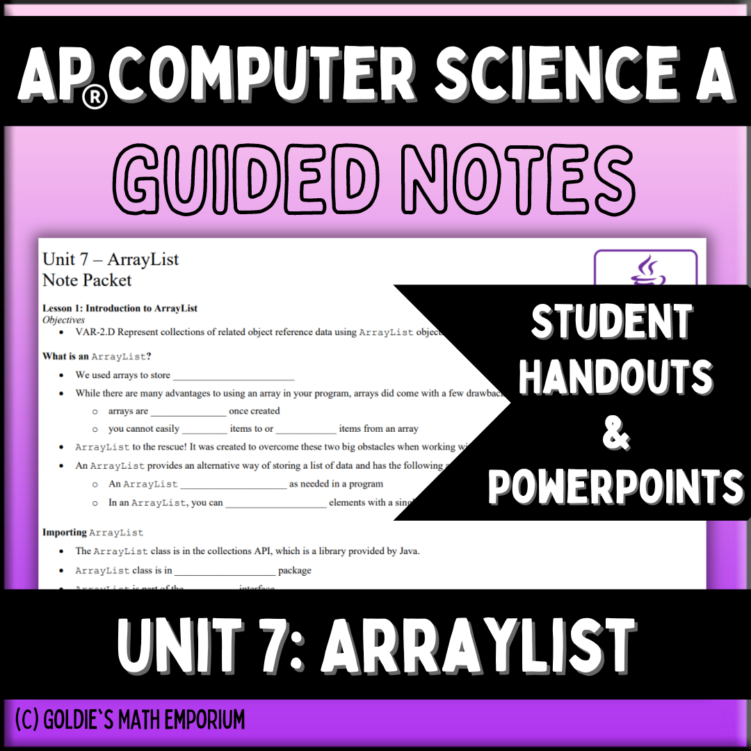 Goldie's Unit 7 GUIDED NOTES for AP® Computer Science A