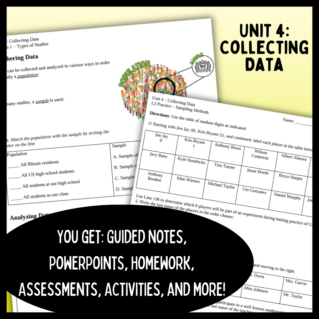 Complete Unit Bundle that teaches about observational studies, sample surveys, sampling, experiments, ethics, and more!