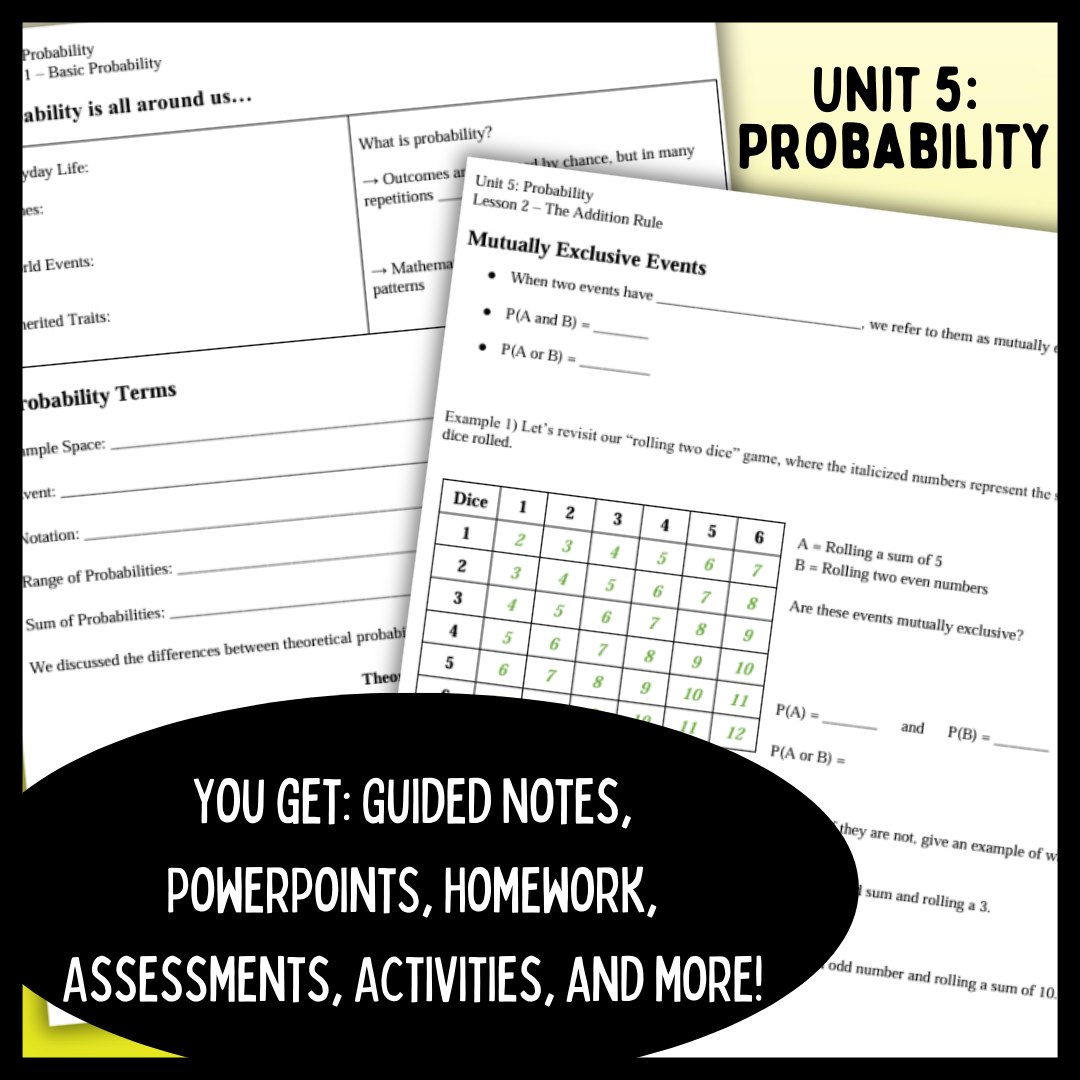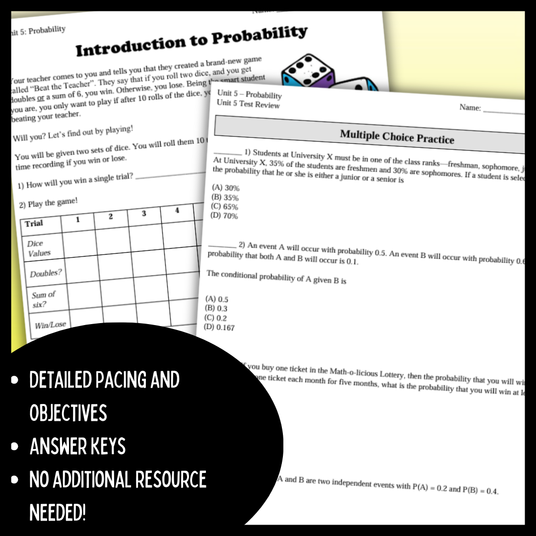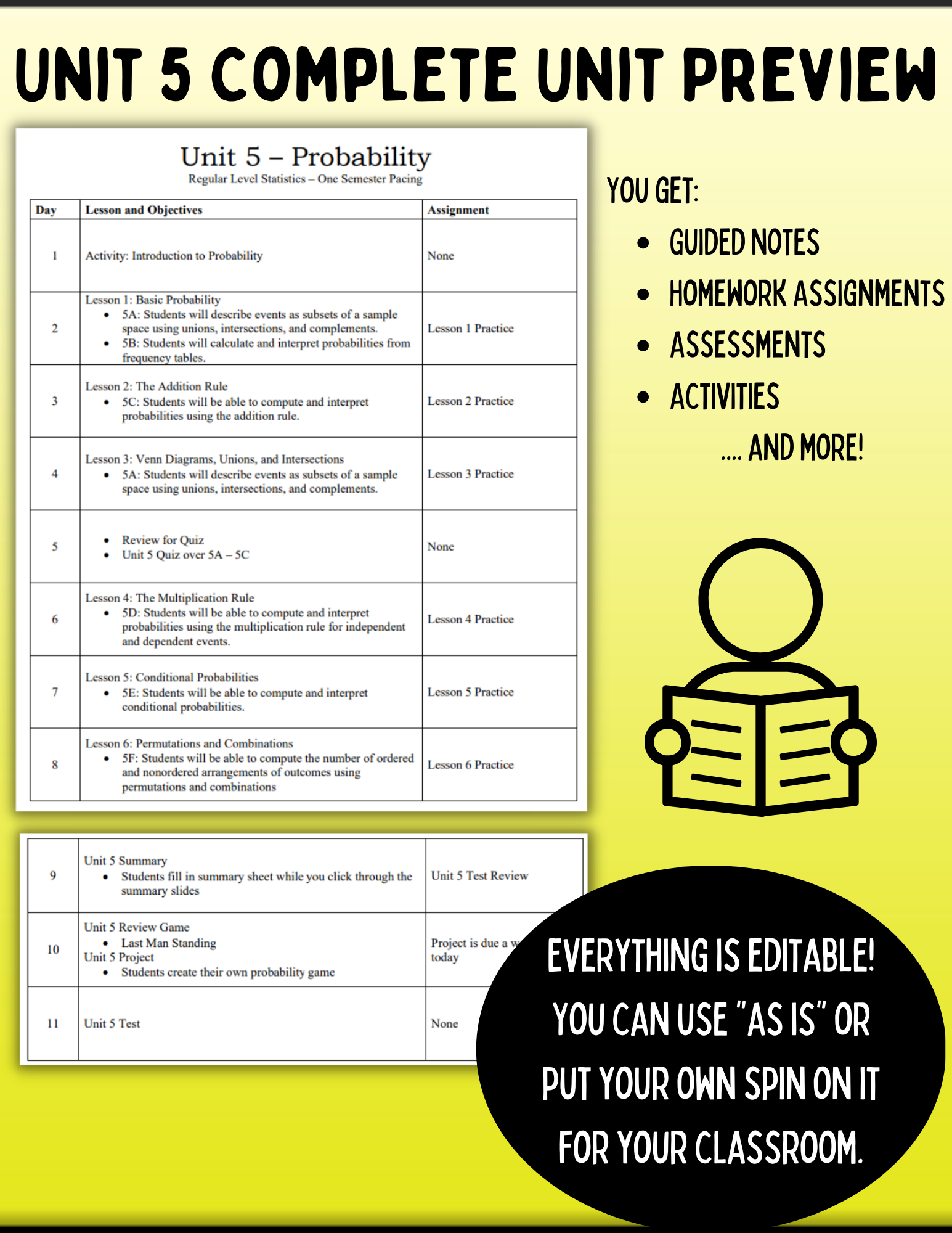 Complete Unit Bundle that teaches about probability, conditional probability, permutations, combinations, and more.